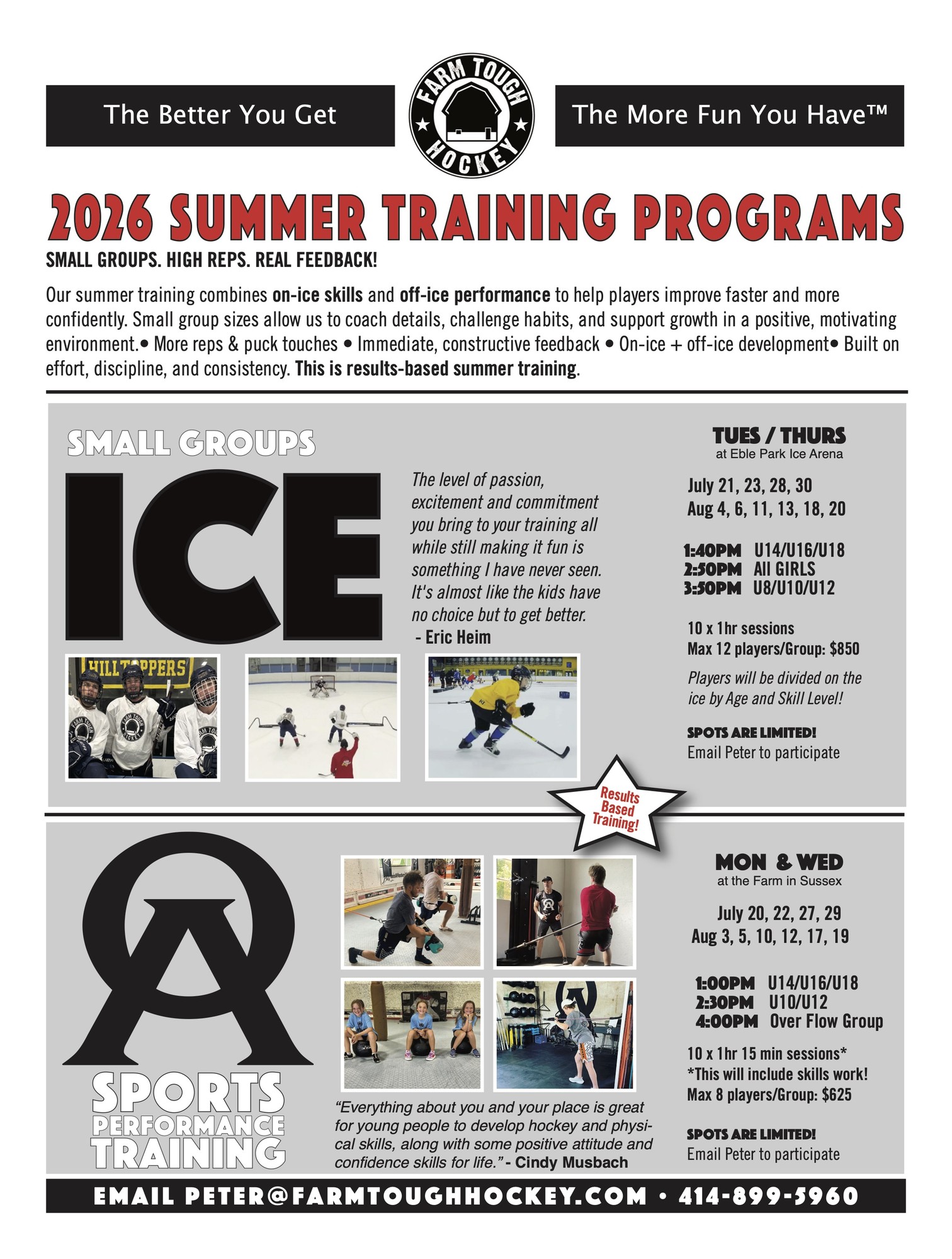 Email: Peter@FarmToughHockey.com to get on our list to be contacted about the programs!